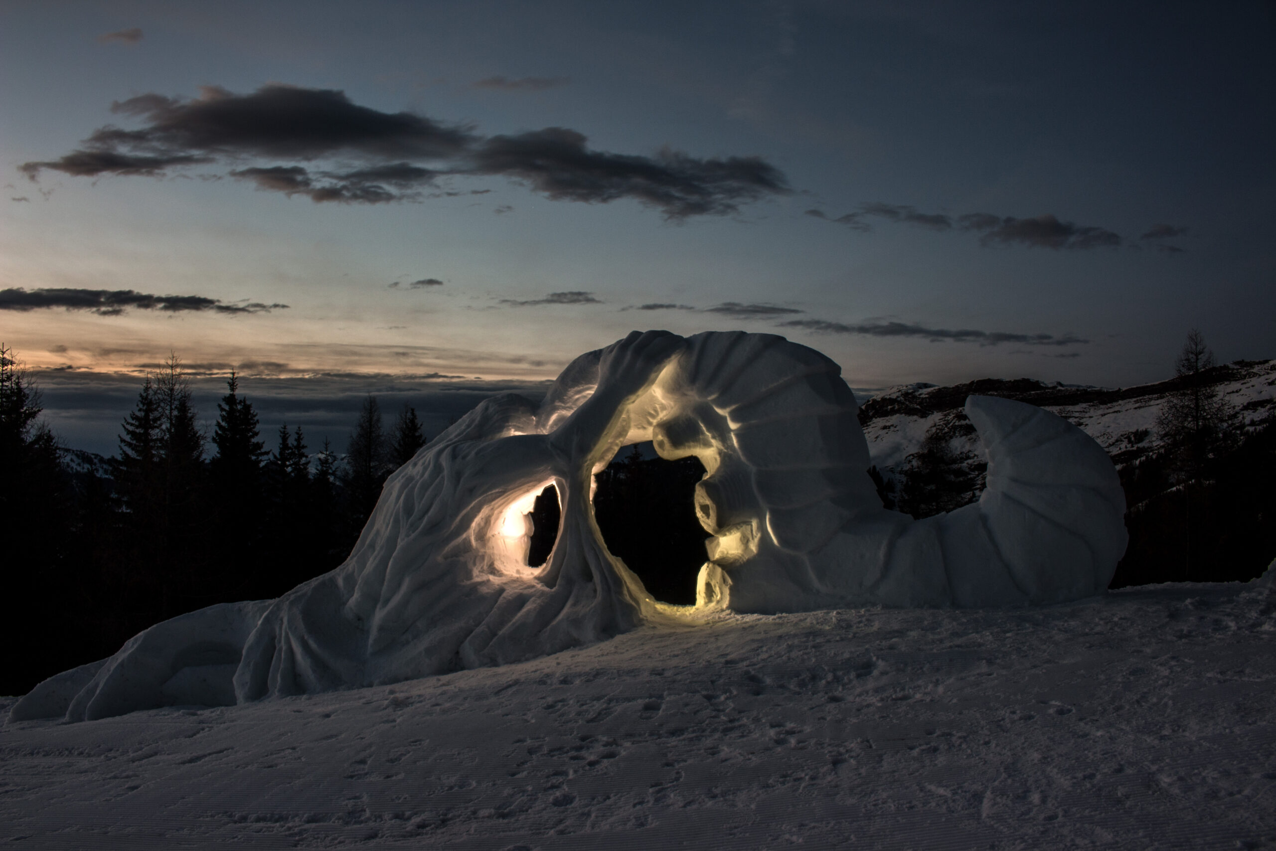 -Schneskulptur „Schrei nach Frühling “ mit Günter Rauch (www.alpinien.de)